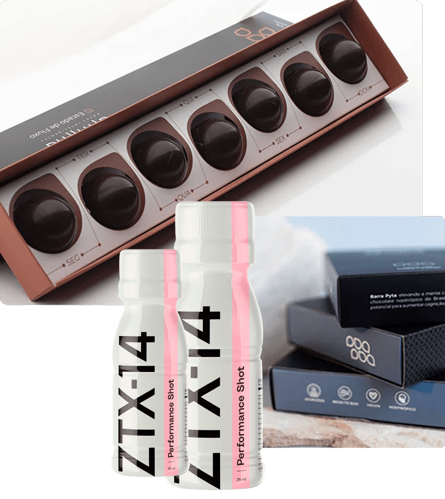 Para quem quer manter corpo e mente em estado de fluxo o mês todo. Receba 4 produtos por mês, combinando Bombons, Barras Pyta e Shots ZTX Labs.