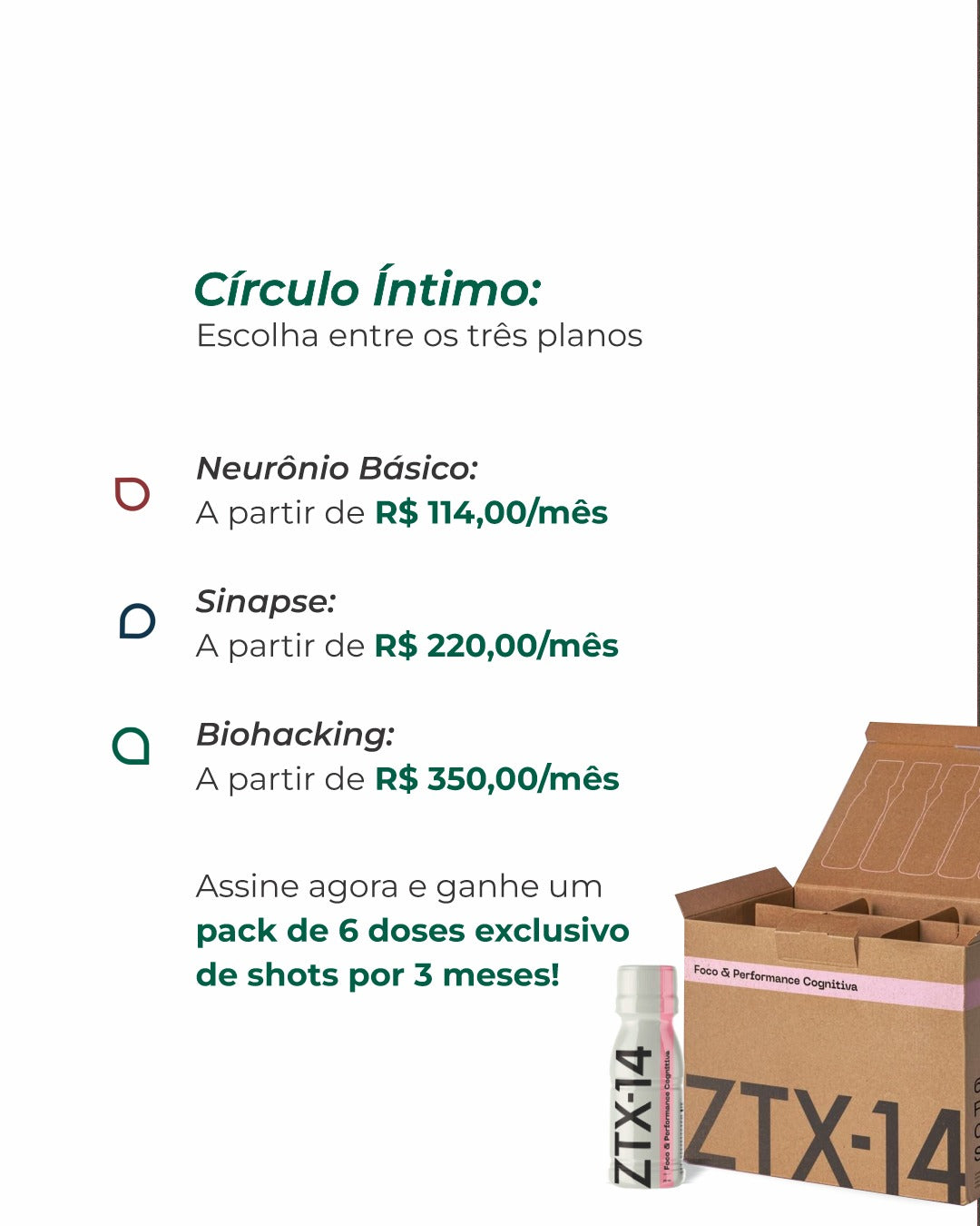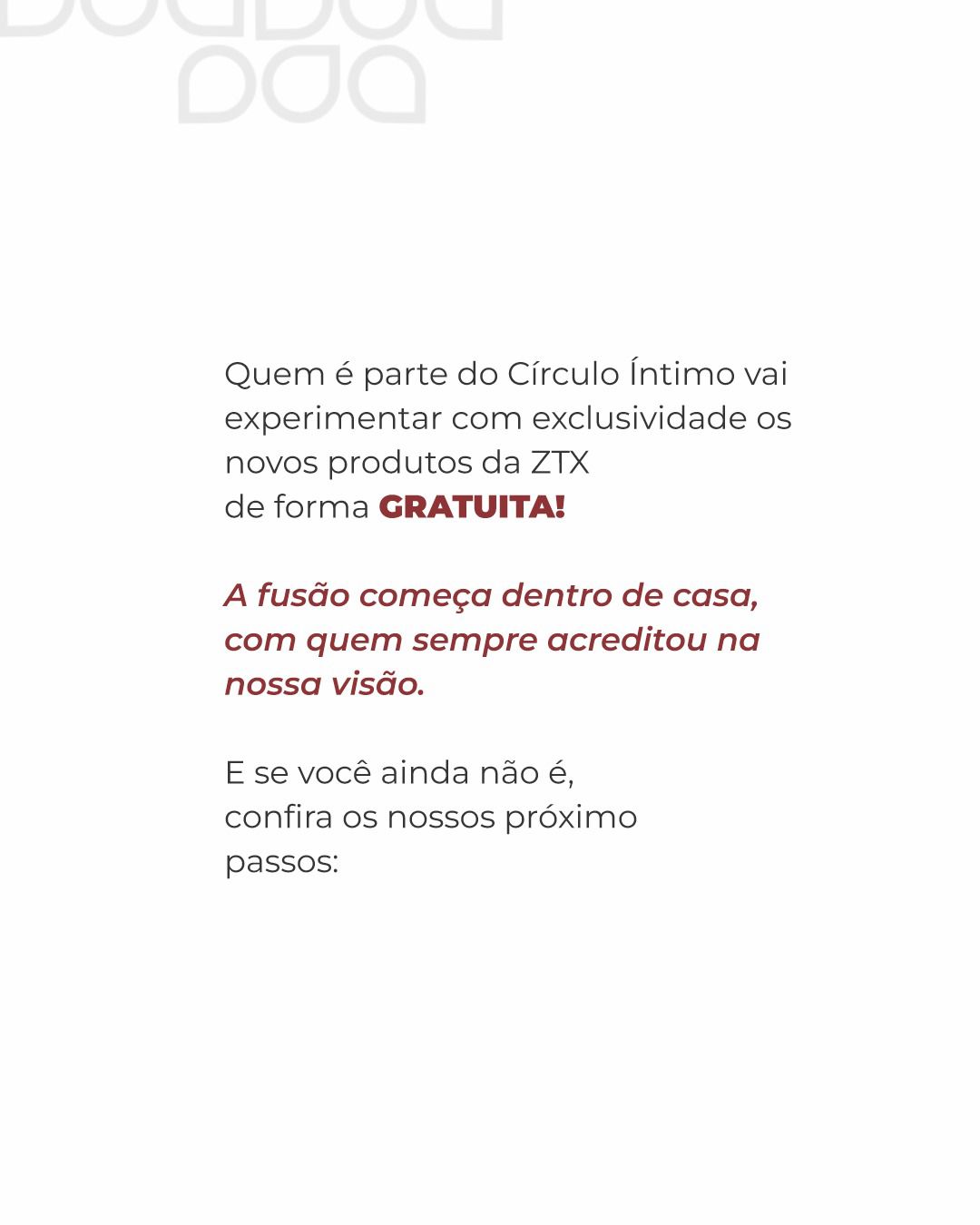 Quem é parte do Círculo Íntimo vai experimentar com exclusividade os novos produtos da ZTX de forma GRATUITA!